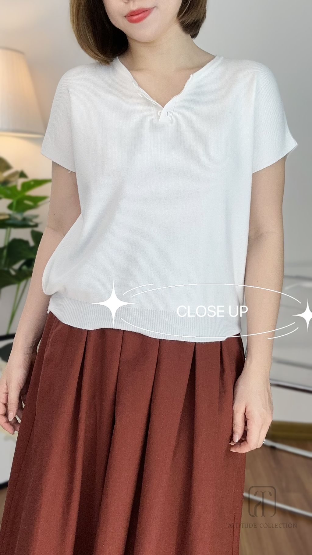 The Front Button Knit Top is a timeless wardrobe essential available in sophisticated shades of black, khaki, cream, and brown. Crafted from soft, breathable knit fabric, this top features a flattering button-down front design that effortlessly elevates any look. Its versatile style makes it perfect for layering or wearing on its own, whether for casual outings or more polished occasions.